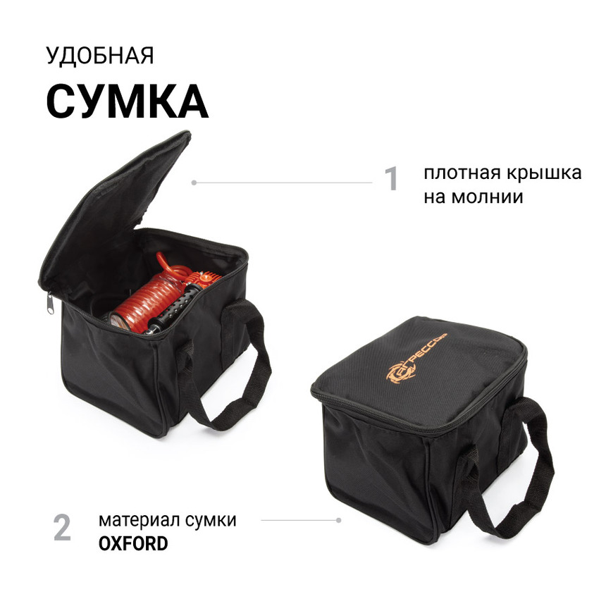 Набор переходников для накачивания велосипедных шин, мячей, матрацев, Переходник с штекера прикуривателя на клеммы АКБ, Шланг-удлинитель с двушкальным манометром, Инструкция по эксплуатации, Сумка для хранения