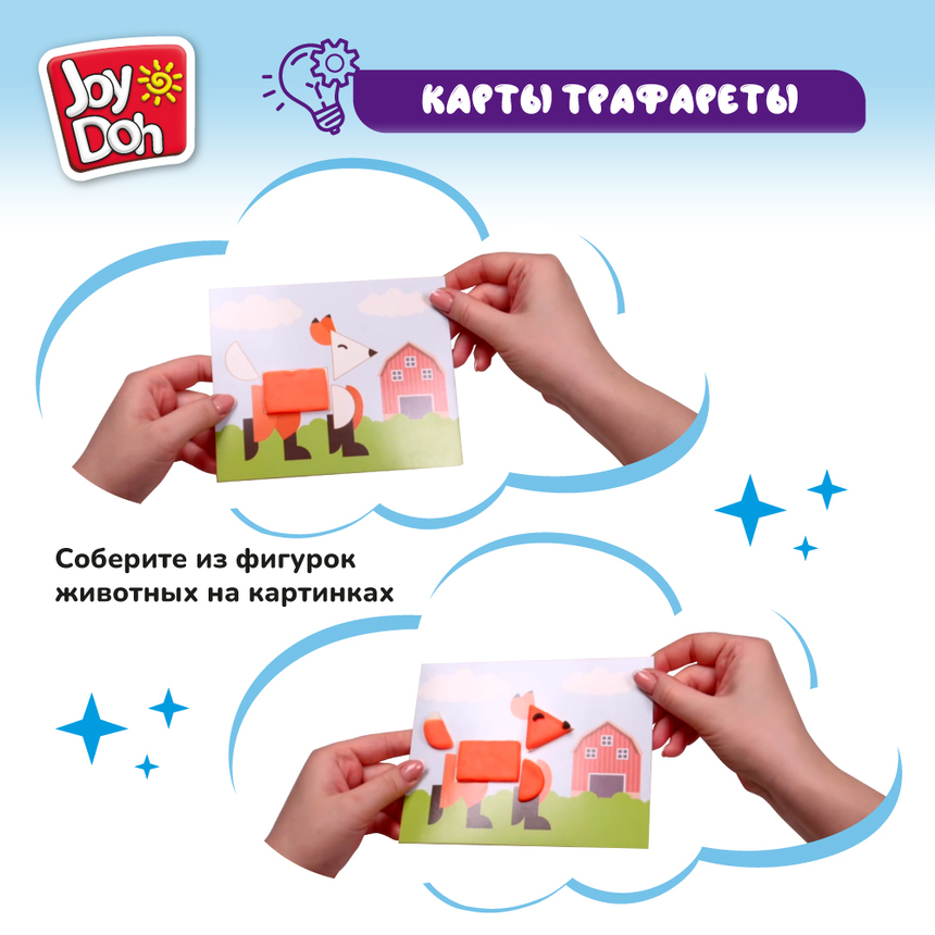 Карты-трафареты помогут освоить логическое мышление и внимательность, а результатом труда станут красивые аппликации. Изучить мир животных помогут дополнительные пресс-формы, с их помощью ребенок без труда слепит любимых питомцев.