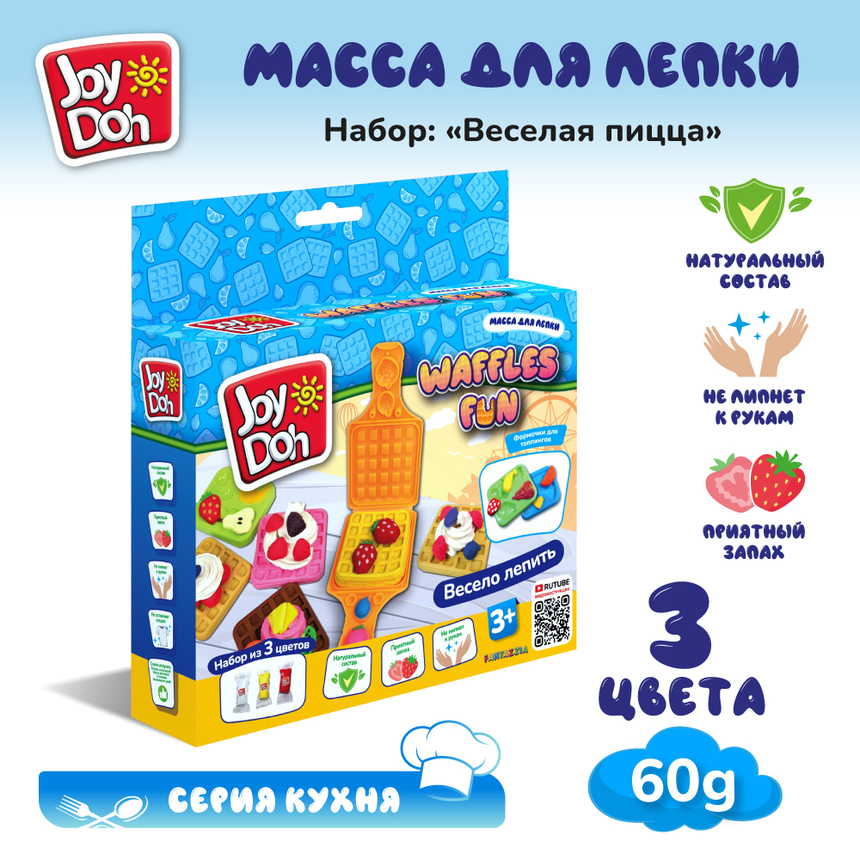 Масса для лепки Joy Doh, набор WAFFLES FUN - ВАФЛИ, пресс-форма для вафли и продуктов, 3 аксессуара, 3 пакетика с тестом,  (3 х 20г.)